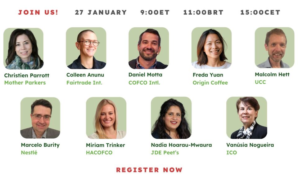 Join us for the Global Coffee Platform’s presentation of the 2024 Sustainable Coffee Purchases Report on 27 January 2026 at 9:00 ET | 11:00 BRT | 15:00 CET, where leading companies and partners will share the most current global picture of how sustainable coffee sourcing is advancing and where the greatest opportunities lie.